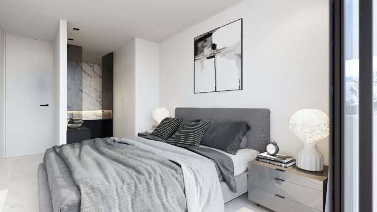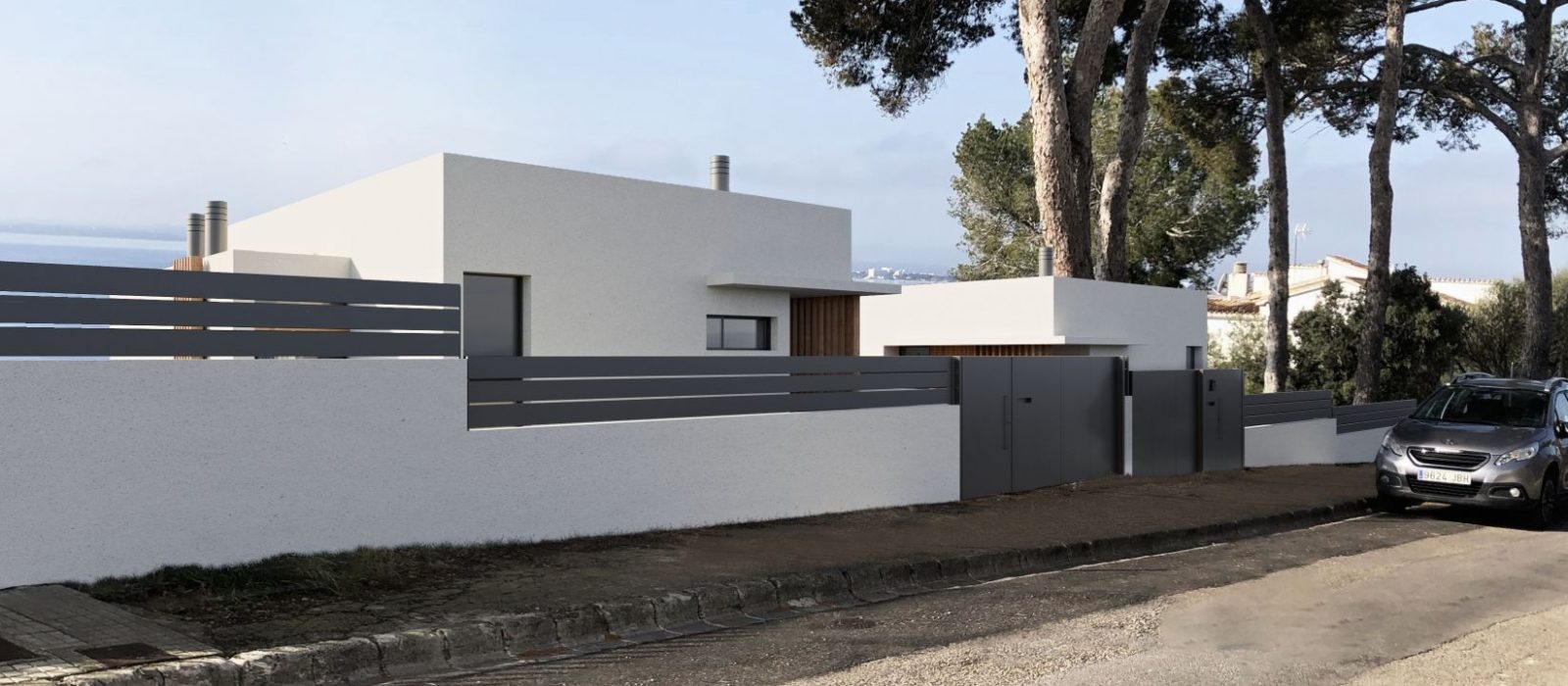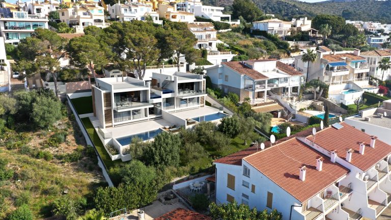 El edificio de viviendas pareadas se implanta en un solar con importante pendiente con acceso por la parte superior. La entrada a las viviendas se produce por la planta piso en la cual se distribuye la zona de día abierta a un porche frontal con espectaculares vistas sobre la bahía de Alcudia.
